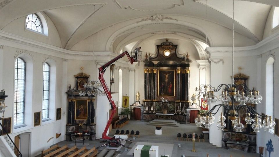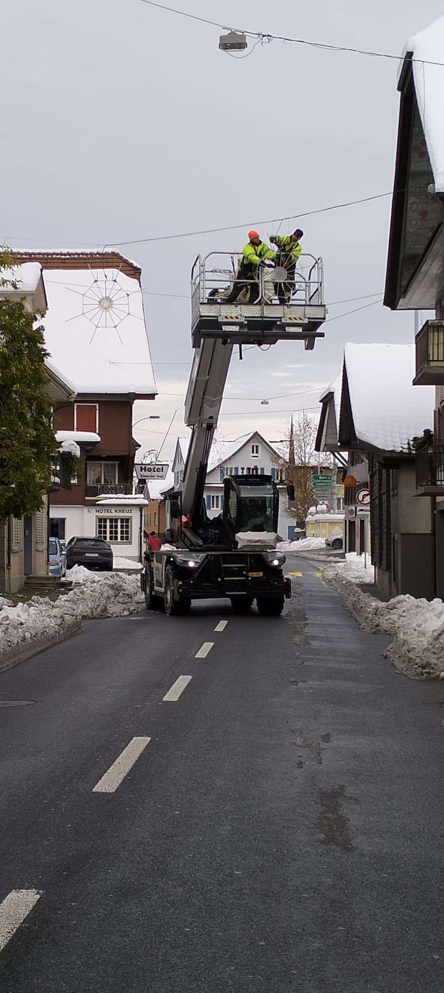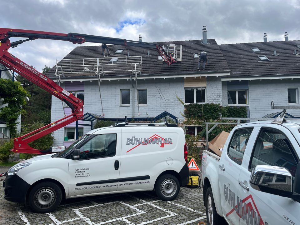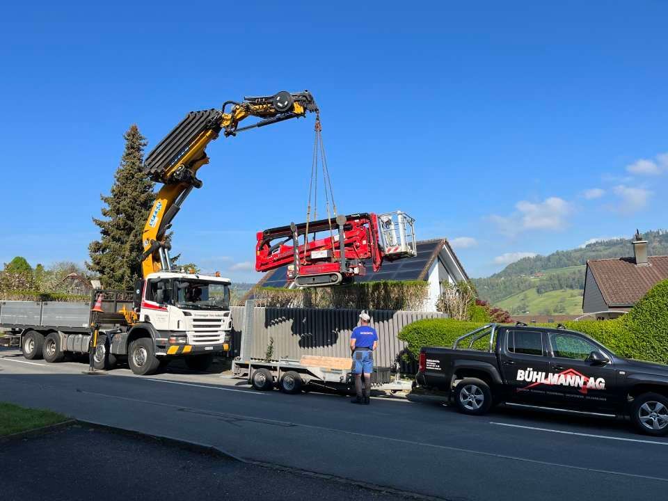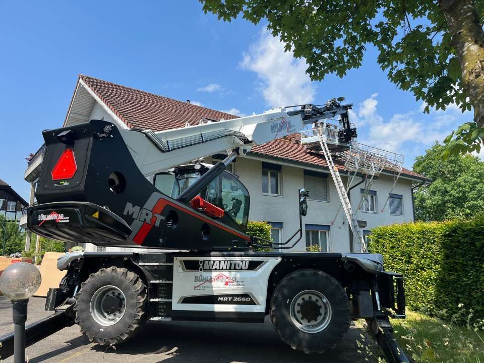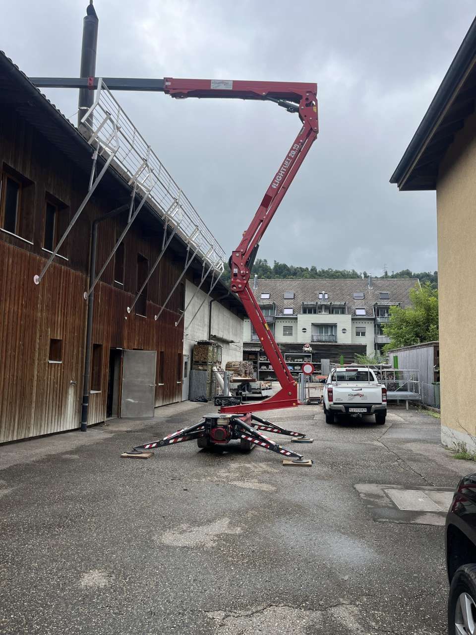 Mit unserer mobilen Hebebühne und dem drehbaren Teleskopstapler können wir schnell und effizient Arbeiten oder Reparaturen in grosser Höhen ausführen. Häufiger Einsatzbereich: